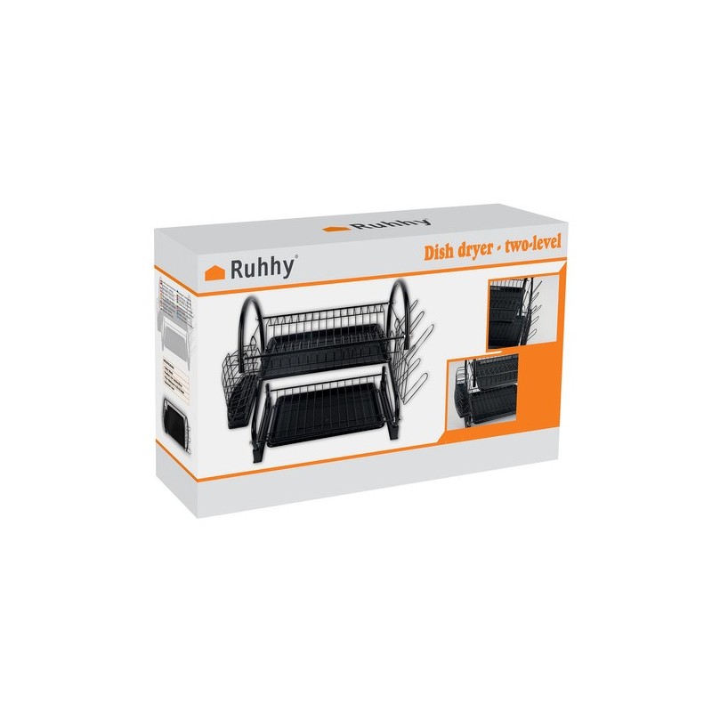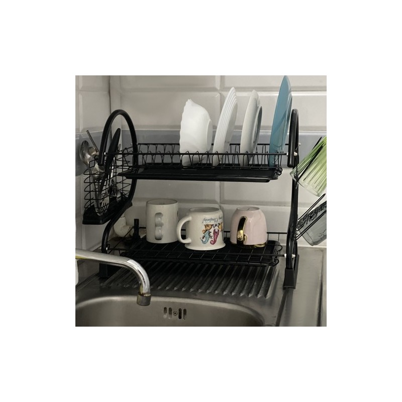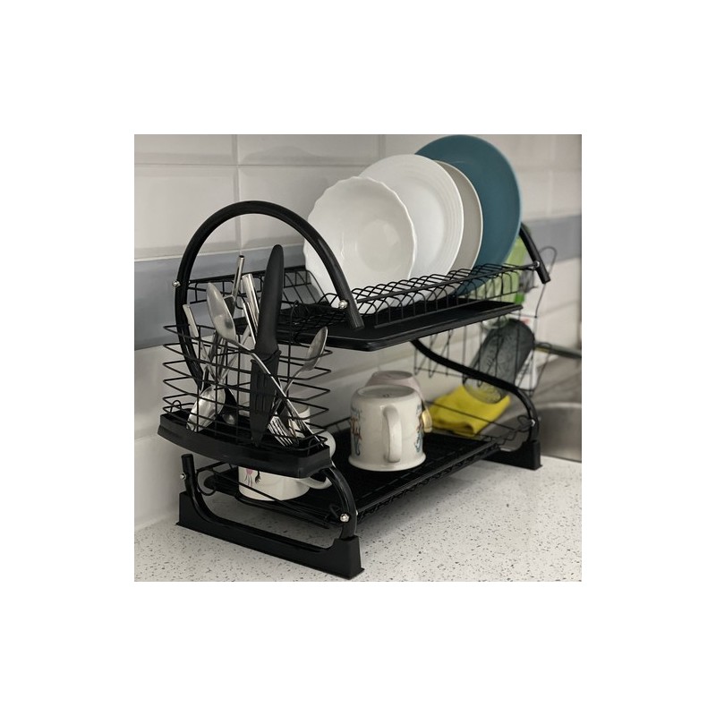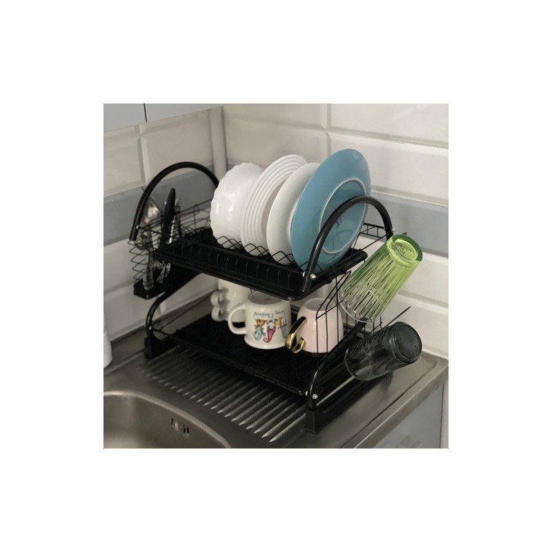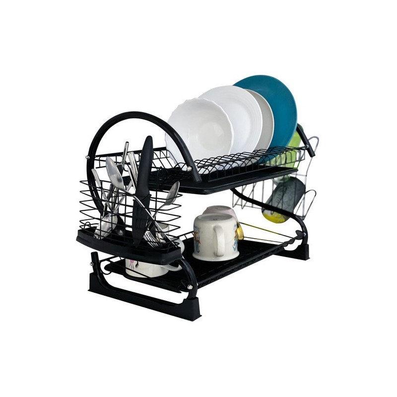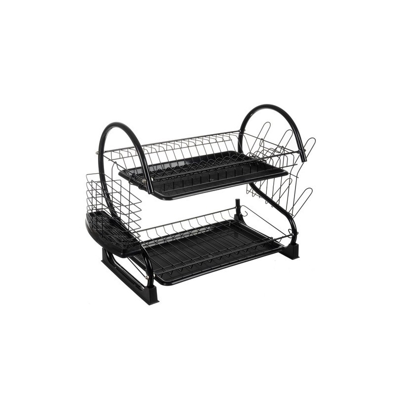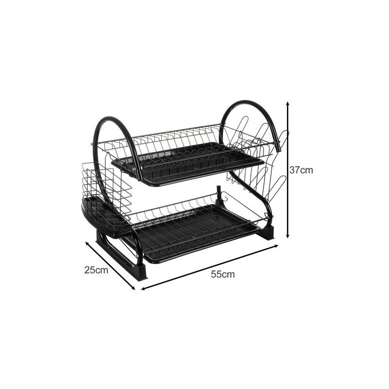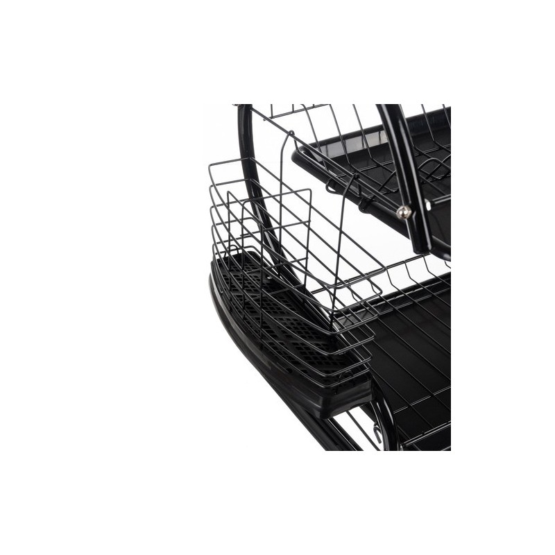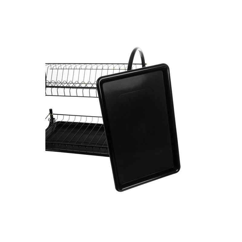 A KÉTSZINTES FOXY BLACK EDÉNYSZÁRÍTÓ a funkcionalitást, a tartósságot és a modern stílust ötvözi. Kiváló minőségű bevonattal ellátott vasból készült, nedvességálló és korrózióálló, elegáns fekete bevonata ipari, loftkaraktert kölcsönöz a belső térnek.