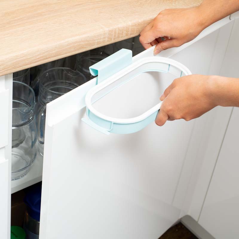 Kényelmes módon a szekrényajtóra akasztható.