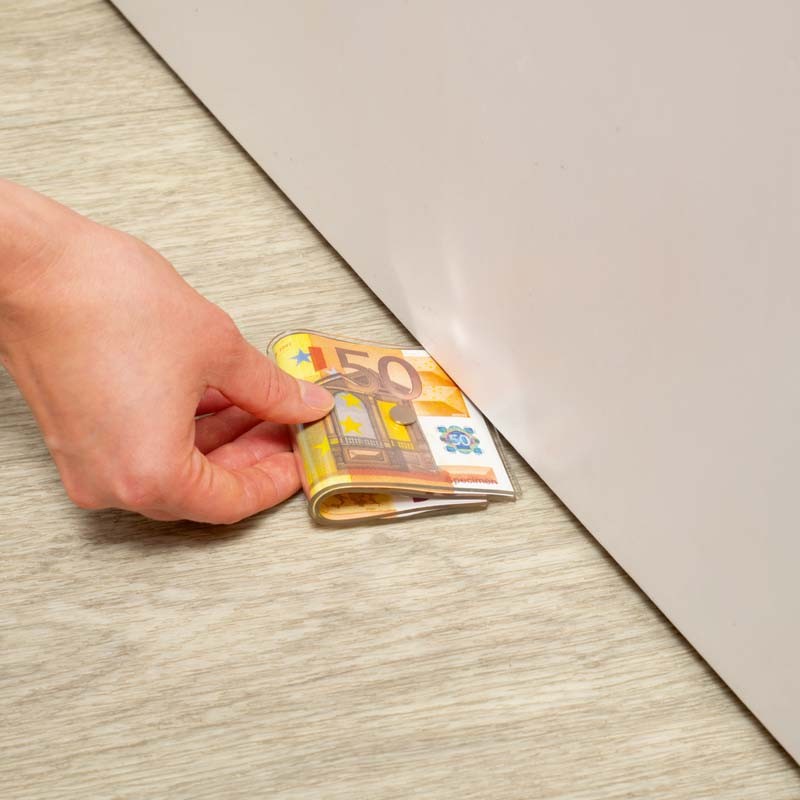Vicces ütköző összehajtott 50 eurós bankjegy formájában.