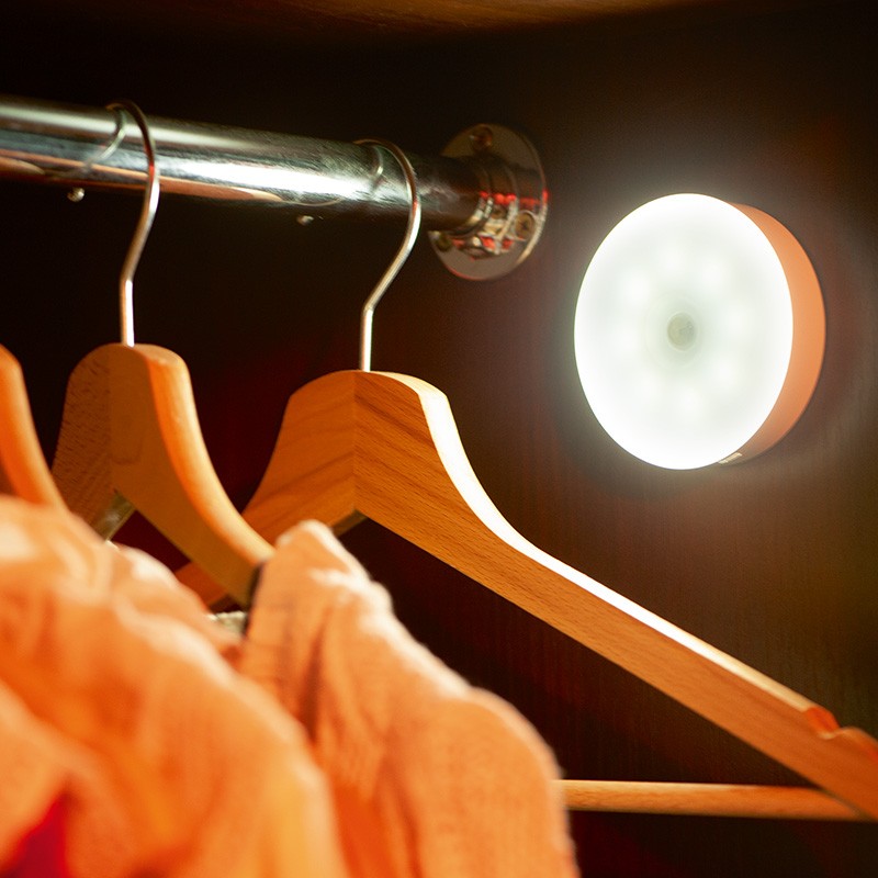 USB lámpa mozgásérzékelővel, műanyag kivitelben, 8,5 cm átmérővel – praktikus kiegészítő kiegészítő fényforrásnak otthon és a ház körül.