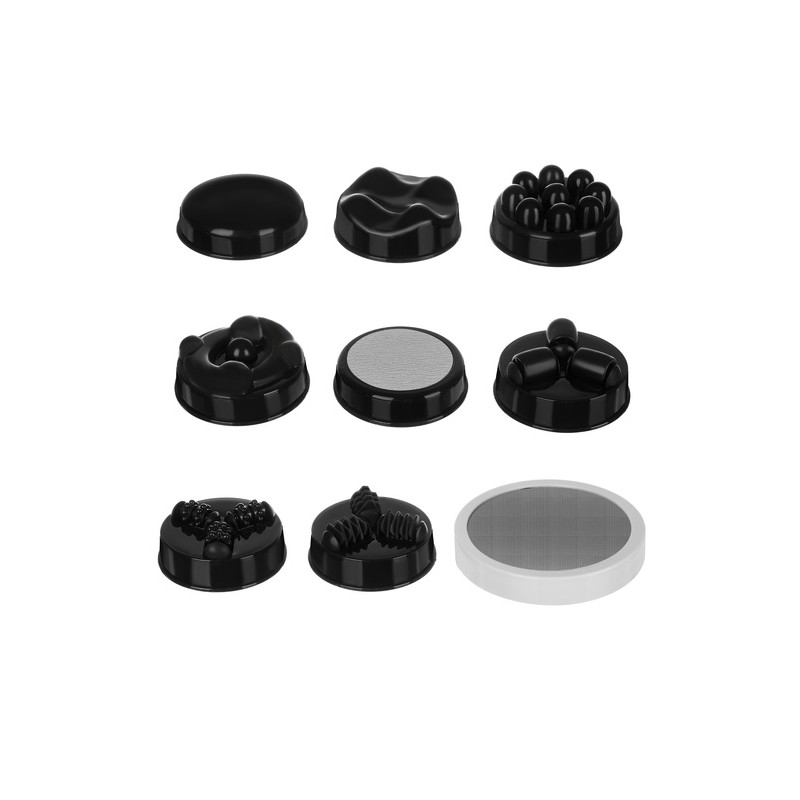 A multifunkcionális 9 az 1-ben karcsúsító masszírozó egy otthoni eszköz, amely ötvözi a relaxáció, a feszesítés és a testformálás hatását. Az infravörös technológiának és a forgó mozgásnak köszönhetően hatékonyan serkenti a vérkeringést, lebontja a zsírszövetet és csökkenti a narancsbőrt. A készlet 9 cserélhető fejjel rendelkezik, amelyekkel a test különböző részeit masszírozhatja - a háttól a combokig és a karokig. Könnyű, kézreálló és egyszerűen használható, ez a masszírozó lehetővé teszi, hogy naponta élvezze a masszázst, amely javítja közérzetét és bőrének megjelenését.