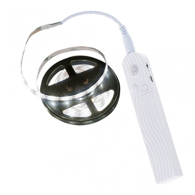 Elemről működő LED szalag mozgásérzékelővel, 2 m hosszban, meleg fehér fénnyel - praktikus kiegészítő világítás, amely a mozgásra reagál.