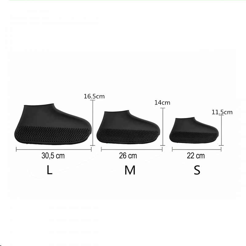 Cipővédőink kiváló minőségű, rugalmas és vízálló szilikonból készülnek. A perforált, csúszásgátló talp csökkenti az elcsúszás veszélyét, így biztonságosabbá teszi a viselést. Hatékonyan védi a cipőt a víztől, sáros felületektől és szennyeződésektől.