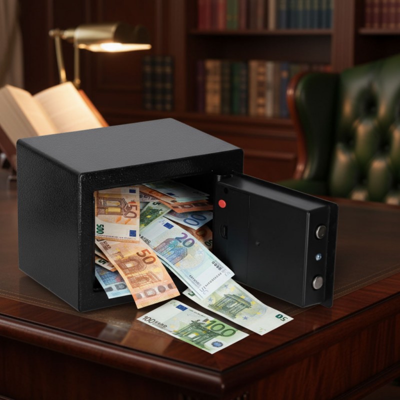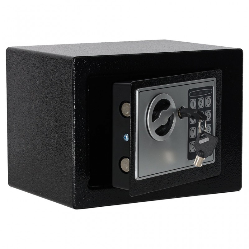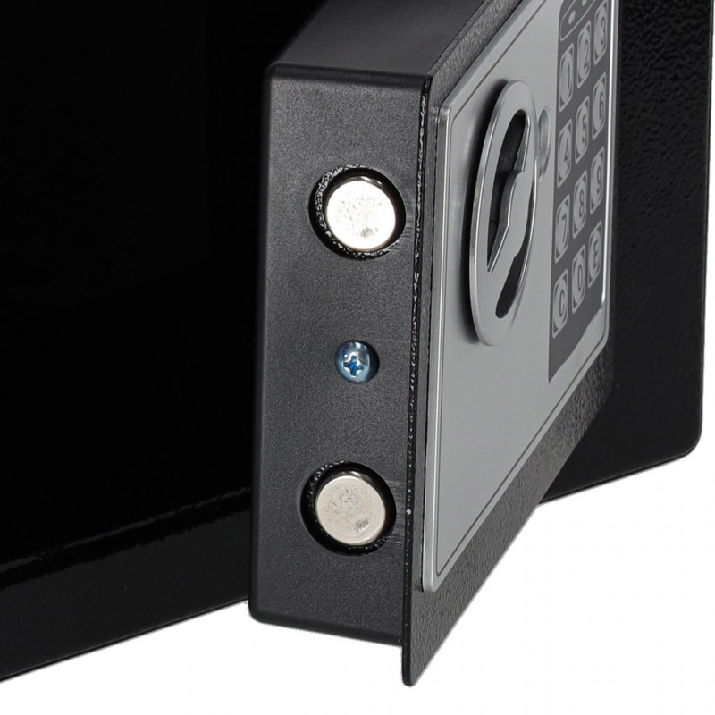 A jelszóval és kulccsal zárható, masszív széf irodai és otthoni használatra egyaránt alkalmas. A kétféle nyitási mód hatékonyan védi az értékeket az illetéktelen hozzáféréstől. A széfben bankjegyek, ékszerek, kulcsok és A5-ös méretű dokumentumok tárolhatók. Az elektronikus zár 3–8 számjegyből álló kód beállítását teszi lehetővé, a kód beíráskor nem látható, a különböző állapotokat pedig fényjelző diódák segítenek megkülönböztetni.