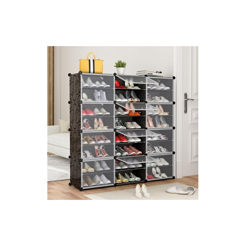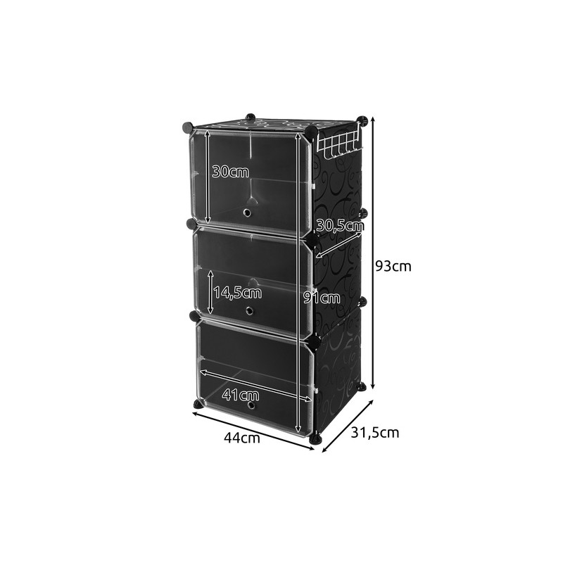 Moduláris cipőszekrény 6 polccal, ami rendet tesz és helyet spórol az előszobában. Az ajtók védik a cipőket a portól, az átlátszó kialakítás pedig gyorsabbá teszi a megfelelő pár megtalálását. A csomagban akasztó és egy fa kalapács is van a könnyebb összeszereléshez.