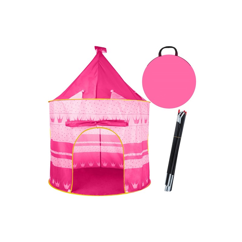 Rózsaszín hercegnő-palota sátor gyerekeknek otthonra és kertbe - biztonságos kuckó kreatív játékhoz és a játékok tárolásához. Gyorsan felállítható, hálós ablakokkal és tépőzáras bejárattal, hordtáskában szállítható.
