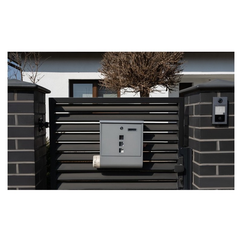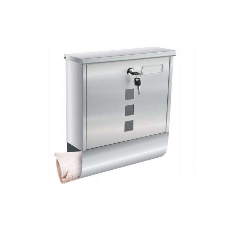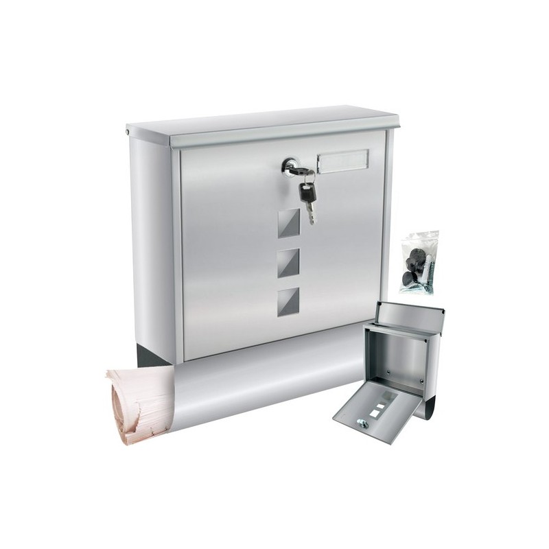 Ezüst A4-es postaláda fedett bedobónyílással, amely védi a küldeményeket az időjárástól. A4-es levelekhez is ideális, alul külön tubával az újságoknak és szórólapoknak. A csomagban 2 kulcs és rögzítő készlet is van.