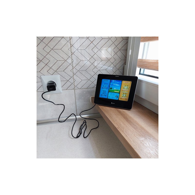 Ha szeretnél gyorsan ránézni, mi történik bent és kint, ez az állomás hozza a lényeget. A külső érzékelő vezeték nélkül küldi az aktuális hőmérséklet- és páratartalom-adatokat az állomásnak, és akár 60 m-es hatótávval is működik, így nagyobb otthonban is jól használható. A készülék folyamatosan figyeli a hőmérsékletet, a légnyomást és a páratartalmat, majd ezek alapján 12-24 órára előre jelzi a várható időjárást. Hőmérséklet-riasztás is elérhető: ha a hőmérséklet a beállított érték alá esik, értesítést kapsz. A nagy, jól olvasható LCD kijelző gyors áttekintést ad, a kitámasztónak köszönhetően pedig könnyen elhelyezhető asztalon, íróasztalon, hűtőn vagy polcon. A visszafogott megjelenés jól illeszkedik a helyiség stílusához.