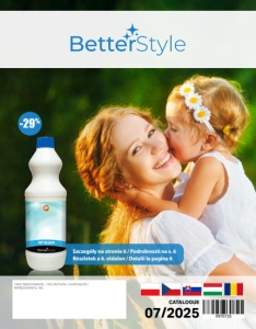 Aby dbać o środowisko, stosujemy proste opakowania, by nie zwiększać ilości śmieci, plastikowe butelki do ponownego przetworzenia, papier z surowców odnawialnych. Zachęcamy Państwa do segregacji odpadów i troski o czystość środowiska. / Abychom neškodili přírodě, používáme: jednoduchá balení, abychom nezvyšovali množství odpadů, plastové recyklovatelné láhve, papír z druhotných surovin. Vyzýváme Vás ke třídění odpadů a péči o čistotu životního prostředí. / A környezetvédelem érdekében: Környezetbarát csomagolásokat használunk a hulladékmennyiség növelésének elkerülésére. Újrahasznosítható műanyag üveget és megújuló nyersanyagból készült papírt használunk. Szeretnénk ösztönözni a hulladék szelektív gyűjtésére, hogy együtt óvjuk a környezetet. / Pentru a nu afecta mediul înconjurător, folosim ambalaje simple, pentru a nu înmulți cantitatea de deșeuri, sticle din plastic reciclabile, hârtie din materii prime regenerabile. Vă îndemnăm să sortaţi deșeurile și să aveţi grijă pentru un mediu curat. Wszystkie produkty przeznaczone do kontaktu z żywnością posiadają odpowiednie atesty. Nie zawierają BPA i są bezpieczne dla zdrowia. Ceny podane w katalogu są cenami sugerowanymi. / Všechny produkty určené pro styk s potravinami mají příslušné atesty. Ceny uvedené v katalogu jsou doporučené ceny. / Minden élelmiszerrel való érintkezésre szánt termék rendelkezik a megfelelő engedélyekkel. A katalógusban szereplő árak ajánlott árak. / Toate produsele destinate să aibă contact cu produsele alimentare dețin atestările corespunzătoare. Prețurile indicate în catalog sunt prețuri sugerate. Betterstyle International www.betterstyle.pl www.betterstyle.cz www.betterstyle.hu www.betterstyle.ro www.betterstyle.ua www.betterstyle.eu WIĘCEJ INFORMACJI O PRODUKTACH ZNAJDZIESZ W KATALOGU INTERAKTYWNYM – ZESKANUJ KOD QR VÍCE INFORMACÍ O PRODUKTECH NAJDETE V INTERAKTIVNÍM KATALOGU – NASKENUJTE QR KÓD A TERMÉKEKKEL KAPCSOLATOS TOVÁBBI INFORMÁCIÓKÉRT TEKINTSD MEG AZ INTERAKTÍV KATALÓGUST – SZKENNELD BE A QR-KÓDOT MAI MULTE INFORMAȚII DESPRE PRODUSE POȚI GĂSI ÎN CATALOGUL INTERACTIV – SCANEAZĂ CODUL QR Chusteczki zapobiegające zafarbowaniu prania Ubrousky proti obarvení prádla Színfogó kendő Șervețele ce previn colorarea rufelor la spălat PL CZ HU RO 15 pcs. 2154 Perfumy do prania Parfém na praní Mosóparfüm Parfum pentru rufe 100 ml PL CZ HU RO mandarynka, bergamotka mandarinka, bergamot mandarin, bergamott mandarină, bergamotă jabłko, limonka, ananas jablko, limetka, ananas alma, lime, ananász măr, lime, ananas czarna porzeczka, grejpfrut, kardamon černý rybíz, grapefruit, kardamon feketeribizli, grapefruit, kardamom coacăze negre, grepfrut, cardamom Nuty pomarańczy, pelargonii, kumaryny i paczuli Tóny pomeranče, pelargonie, kumarinu a pačuli A narancs, a muskátli, a kumarin és a pacsuli Note de portocală, mușcată, cumarină și paciuli 2142 Perfumy do prania Parfém na praní Mosóparfüm Parfum pentru rufe 100 ml PL CZ HU RO 2124 Perfumy do prania Parfém na praní Mosóparfüm Parfum pentru rufe 100 ml PL CZ HU RO 2086 Perfumy do prania Parfém na praní Mosóparfüm Parfum pentru rufe 100 ml PL CZ HU RO 39,90 zł 249 Kč 10,38 € 3990 Ft 48,90 lei 1 L = 399,00 zł / 2490 Kč 103,80 € / 39900 Ft / 489,00 lei 39,90 zł 249 Kč 10,38 € 3990 Ft 48,90 lei 1 L = 399,00 zł / 2490 Kč 103,80 € / 39900 Ft / 489,00 lei PL: Za każde 50 zł wydane na zakupy z tego katalogu CZ: Za každých 349 Kč / 13,49 € nákupu z tohoto katalogu HU: Ebben a katalógusban található bármely termékre elköltött 3600 Ft után RO: Pentru fiecare 55 lei cheltuiți la cumpărăturile din acest catalog! -54% 29,90 zł 179 Kč 7,46 € 2990 Ft 36,90 lei 39,90 zł 249 Kč 10,38 € 3990 Ft 48,90 lei * 39,90 zł / 249 Kč / 10,38 € 3990 Ft / 45,90 lei 1 L = 299,00 zł / 1790 Kč 74,60 € / 29900 Ft / 369,00 lei % 29,90 zł 179 Kč 7,46 € 2990 Ft 36,90 lei 39,90 zł 249 Kč 10,38 € 3990 Ft 48,90 lei * 39,90 zł / 249 Kč / 10,38 € 3990 Ft / 45,90 lei 1 L = 299,00 zł / 1790 Kč 74,60 € / 29900 Ft / 369,00 lei % 6,90 zł 39 Kč 1,63 € 690 Ft 7,90 lei 14,90 zł 99 Kč 4,13 € 1490 Ft 17,90 lei * 14,90 zł / 99 Kč / 4,13 € 1490 Ft / 15,90 lei % CLEANING CLEANING * Najniższa cena w ostatnich 30 dniach / Nejnižší cena za posledních 30 dní / A legalacsonyabb ár az elmúlt 30 napban / Cel mai mic preț din ultimele 30 de zile 3 2 Spiesz się! Liczba produktów w promocji ograniczona / Pospěšte si! Výrobky v akci jsou počtem omezeny! / Siess! Az akciós termékek száma korlátozott / Grăbește-te! Numărul produselor la promoție este limitat! CLEANING with BetterStyle