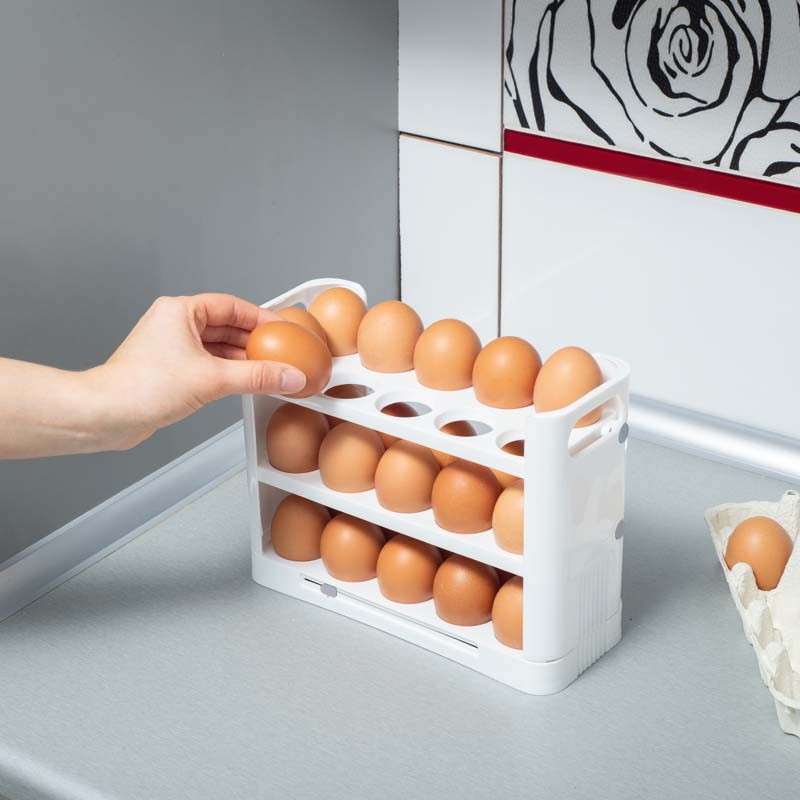Praktikus tojástartó állvány, amely segít rendezett módon elhelyezni a tojásokat a konyhában vagy tálaláskor.