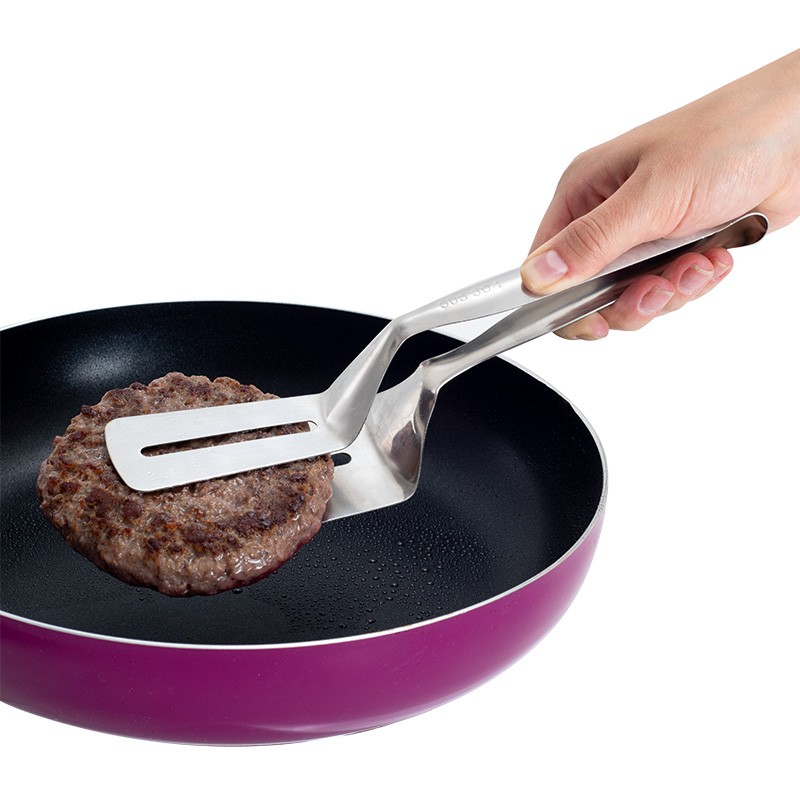 A 2 az 1-ben lapát–csipesz univerzális fém konyhai eszköz megjelenésével illeszkedik a legtöbb konyhába. A pontos kinézet, felület és kialakítás részletei a termékfotókon és a gyártó bemutatójában láthatók a weboldalon.