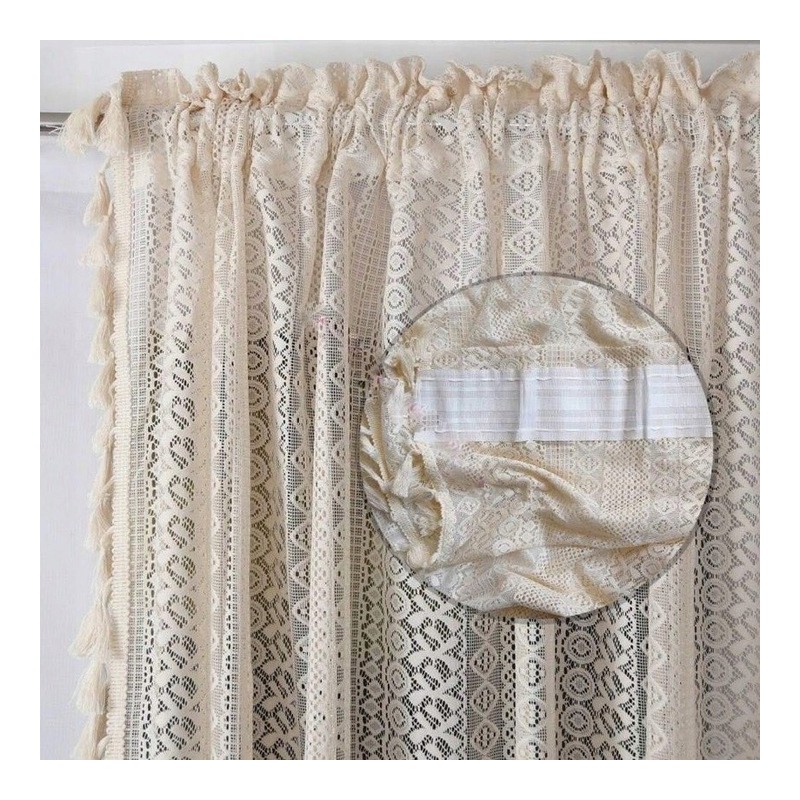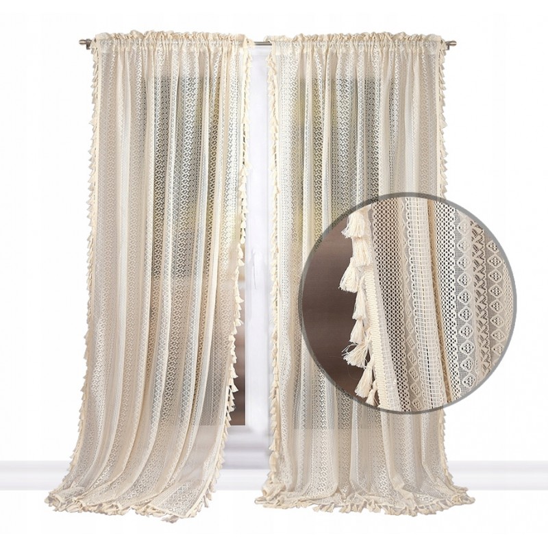 BOHO csipke függöny 145×250 cm méretben, ráncolószalaggal, amely eleganciát és könnyedséget visz az otthonodba, miközben egyszerűen felszerelhető a karnisra.