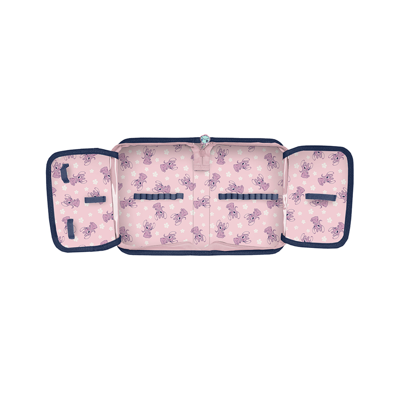 Stitch&Angel (üres) tolltartó - strapabíró, színes és praktikus. A fedél belsejében tollak, ceruzák és egyéb eszközök is tárolhatók. Tökéletes az iskolába Stitch-rajongók számára.