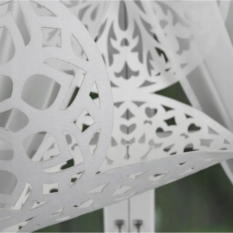A fehér függöny friss, légies megjelenést ad a helyiségnek, és könnyen kombinálható különböző berendezési stílusokkal. Az álomfogó motívummal díszített dekorpanel egyedi karaktert visz a térbe, modern, mégis otthonos akcentusként. A sima, puha voile és a hangsúlyos panel együtt letisztult, stílusos kompozíciót alkot, amely modern és klasszikus enteriőrökben egyaránt jól működik. A szett úgy ötvözi a funkcionalitást és a dekorativitást, hogy közben nem terheli túl a szoba látványát.