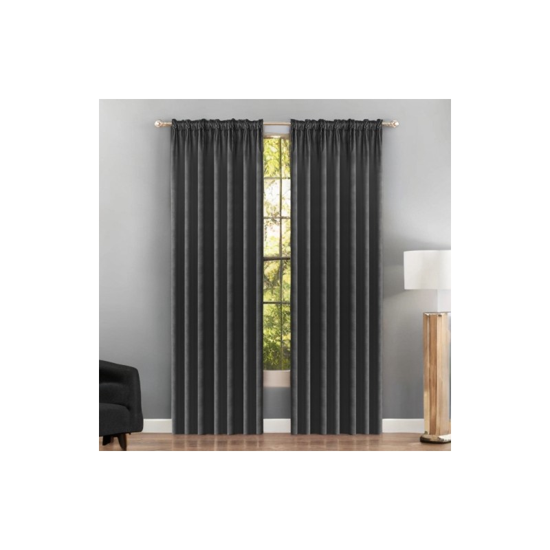 Sötétszürke, sötétítő velúr függöny glamour stílusban, 140 x 230 cm-es méretben, ráncolós szalaggal, amely elegáns ablakdekorációt, fényvédelmet és nagyobb intimitást biztosít.
