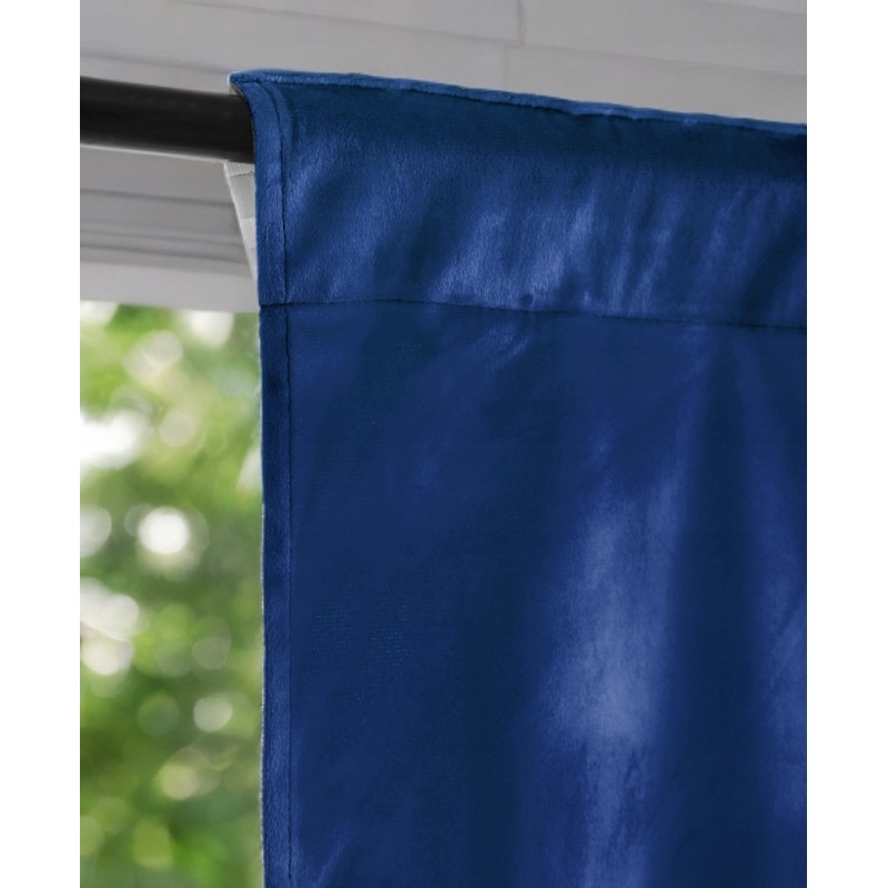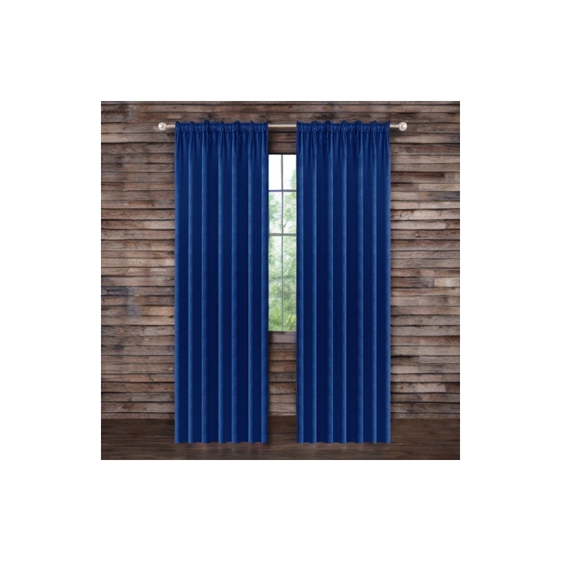 Sötétkék (navy), sötétítő velúr függöny glamour stílusban, 140 x 250 cm-es méretben, ráncolós szalaggal, amely elegáns ablakdekorációt, fényvédelmet és nagyobb intimitást biztosít.