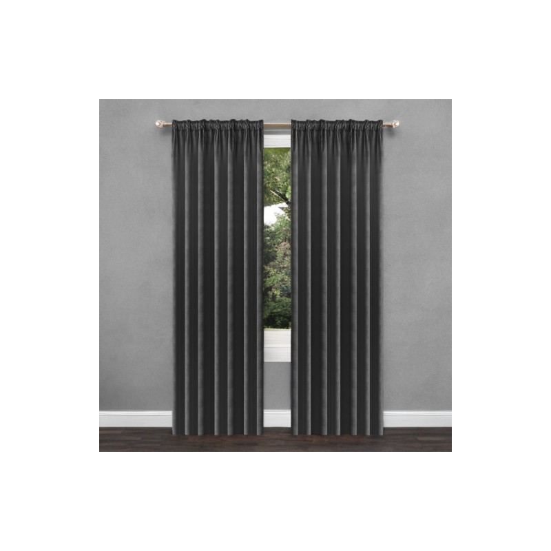 Sötétszürke, sötétítő velúr függöny glamour stílusban, 140 x 250 cm-es méretben, ráncolós szalaggal, amely elegáns ablakdekorációt, fényvédelmet és nagyobb intimitást biztosít.