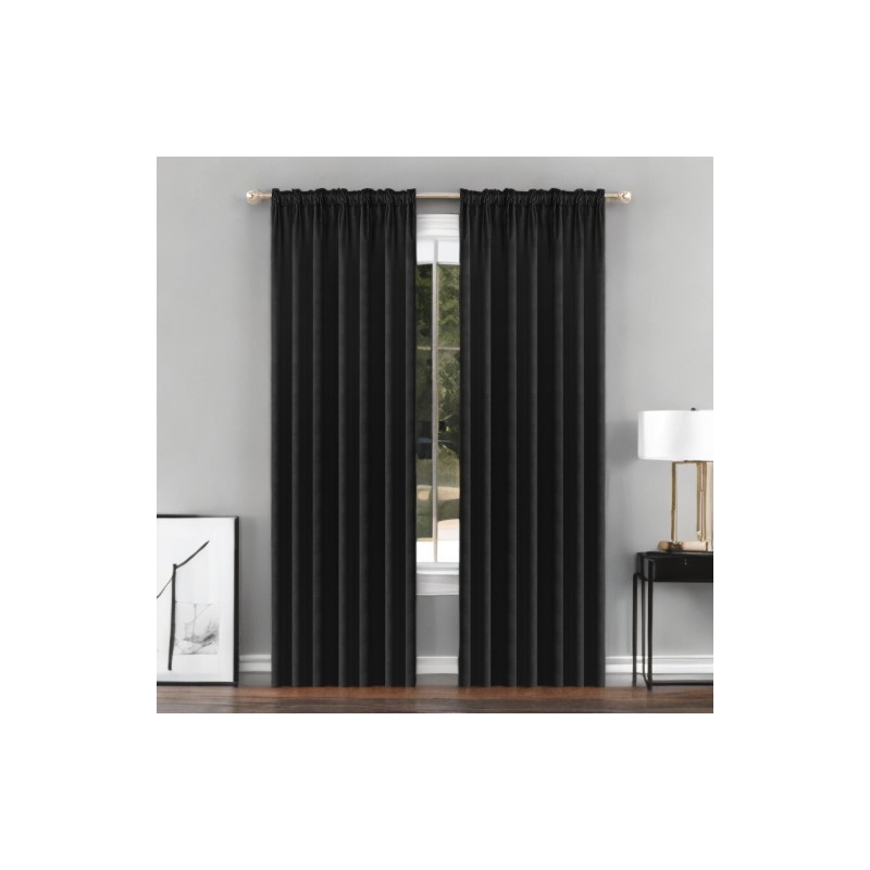 Fekete, sötétítő velúr függöny glamour stílusban, 140 x 270 cm-es méretben, ráncolós szalaggal, amely elegáns ablakdekorációt, fényvédelmet és nagyobb intimitást biztosít.