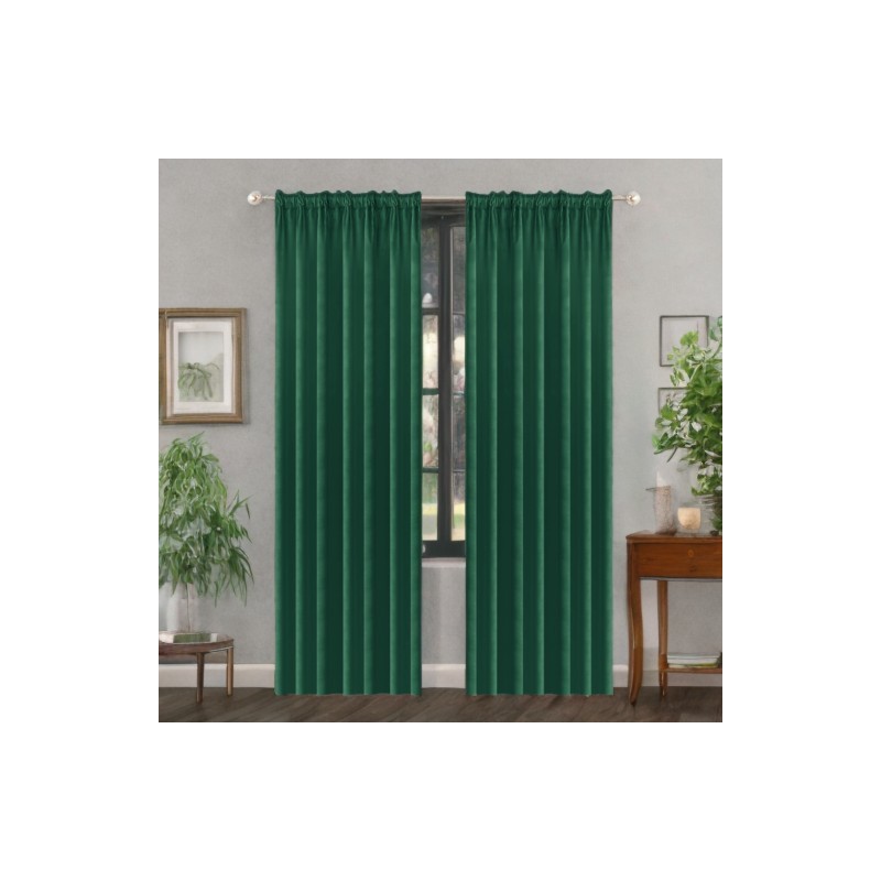 Palackzöld, sötétítő velúr függöny glamour stílusban, 140 x 270 cm-es méretben, ráncolós szalaggal, amely elegáns ablakdekorációt, fényvédelmet és nagyobb intimitást biztosít.