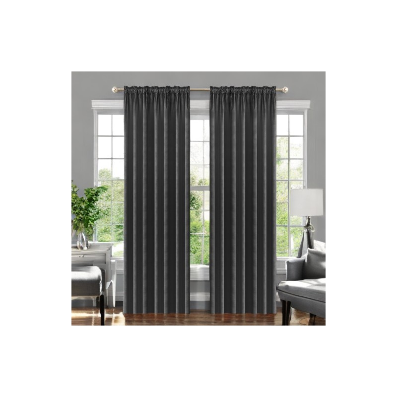 Sötétszürke, sötétítő velúr függöny glamour stílusban, 140 x 270 cm-es méretben, ráncolós szalaggal, amely elegáns ablakdekorációt, fényvédelmet és nagyobb intimitást biztosít.