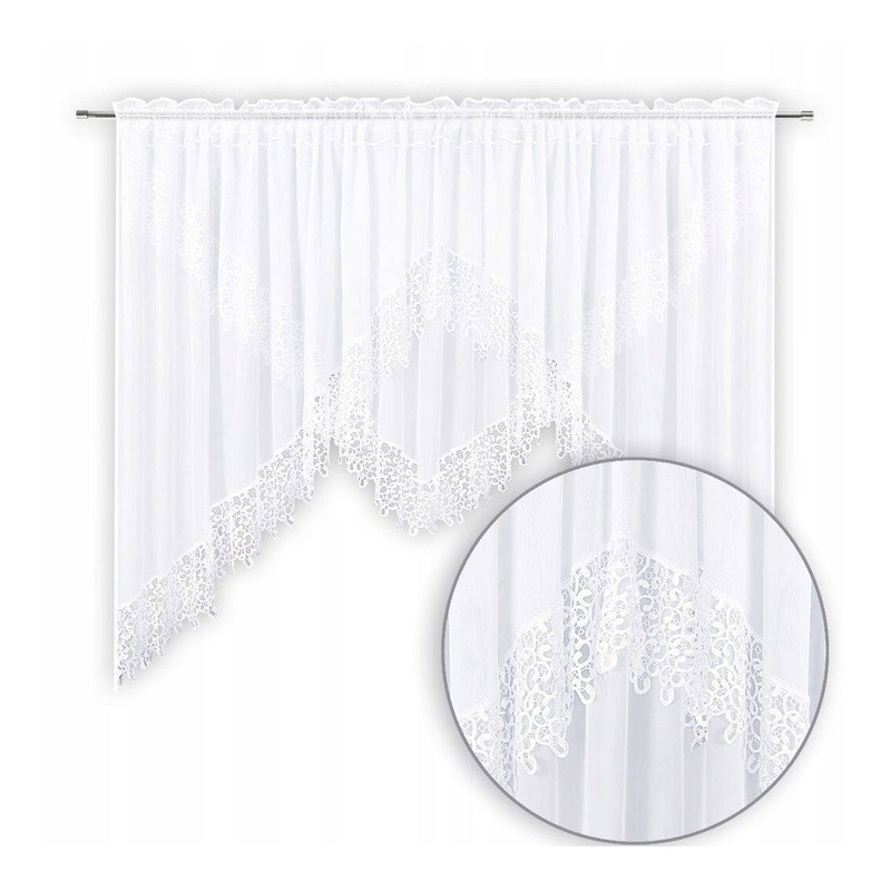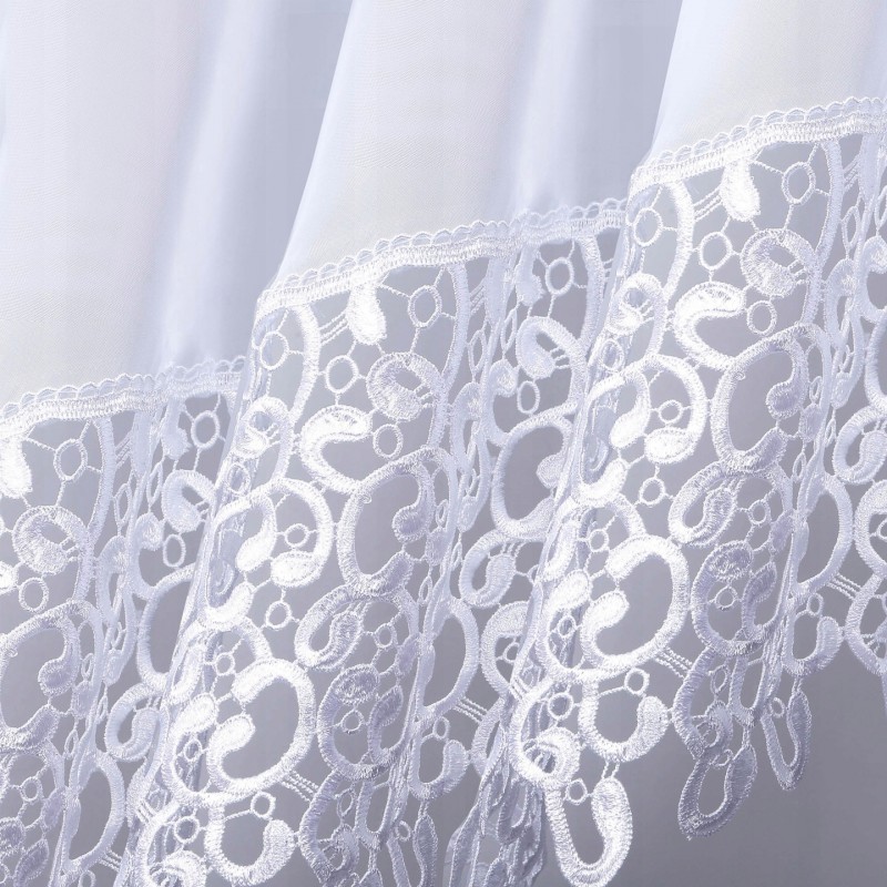 Kétrétegű fehér voile függöny széles, díszes gipűrrel a látványos, elegáns ablakdekorációért. A finom voile lágyan szórja a fényt, a klasszikus fehér pedig könnyen illeszkedik bármilyen enteriőrbe. A gyártási folyamat miatt a szállítási idő hosszabb.