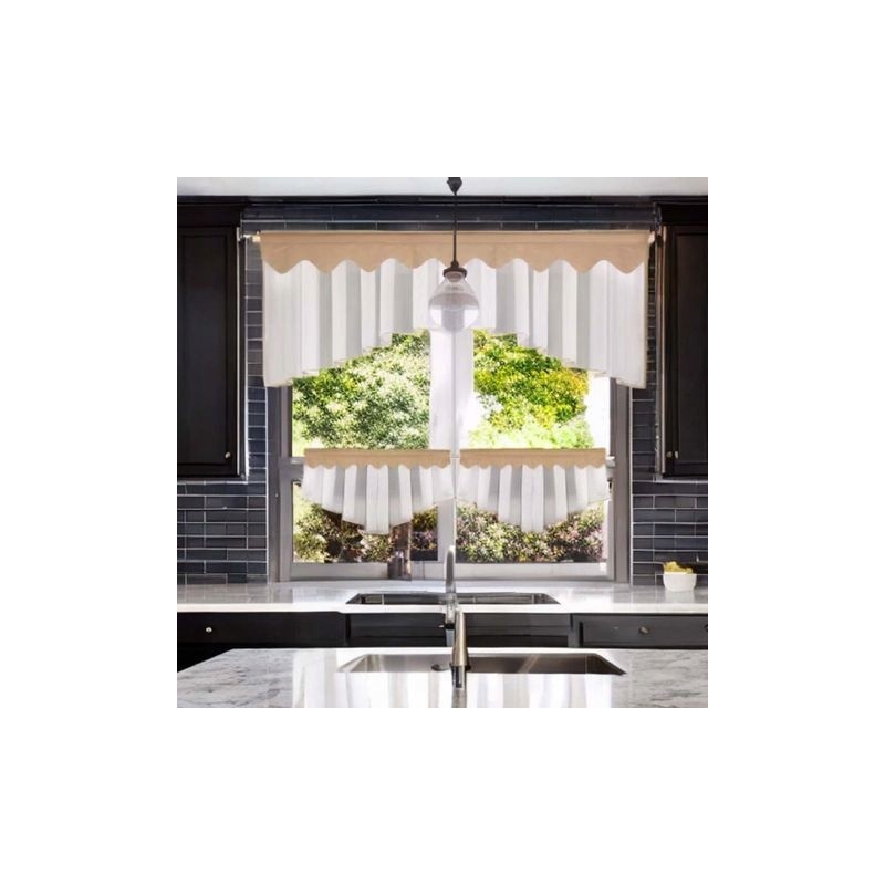 A csomag vitrázs függönyöket és egy hosszabb konyhai voile függönyt tartalmaz.