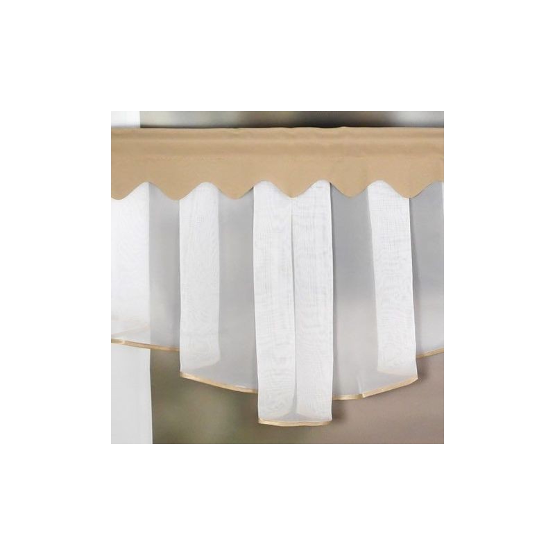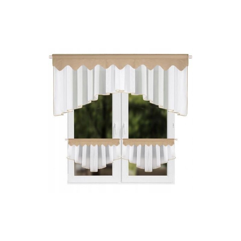 Elegáns konyhai szett: voile függöny 200x80 cm és vitrázs függönyök 90x50 cm. Meleg, otthonos hangulatot ad, finoman szűri a fényt és segít megőrizni a privát szférát, miközben a visszafogott minta karaktert ad az ablaknak. A gyártási folyamat miatt a szállítási idő hosszabb.