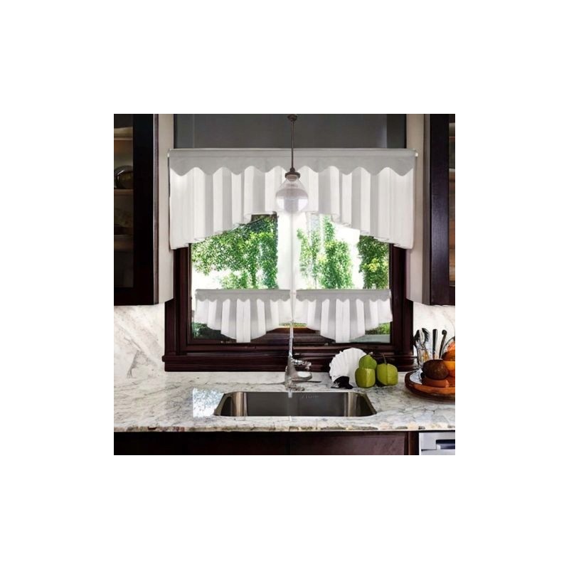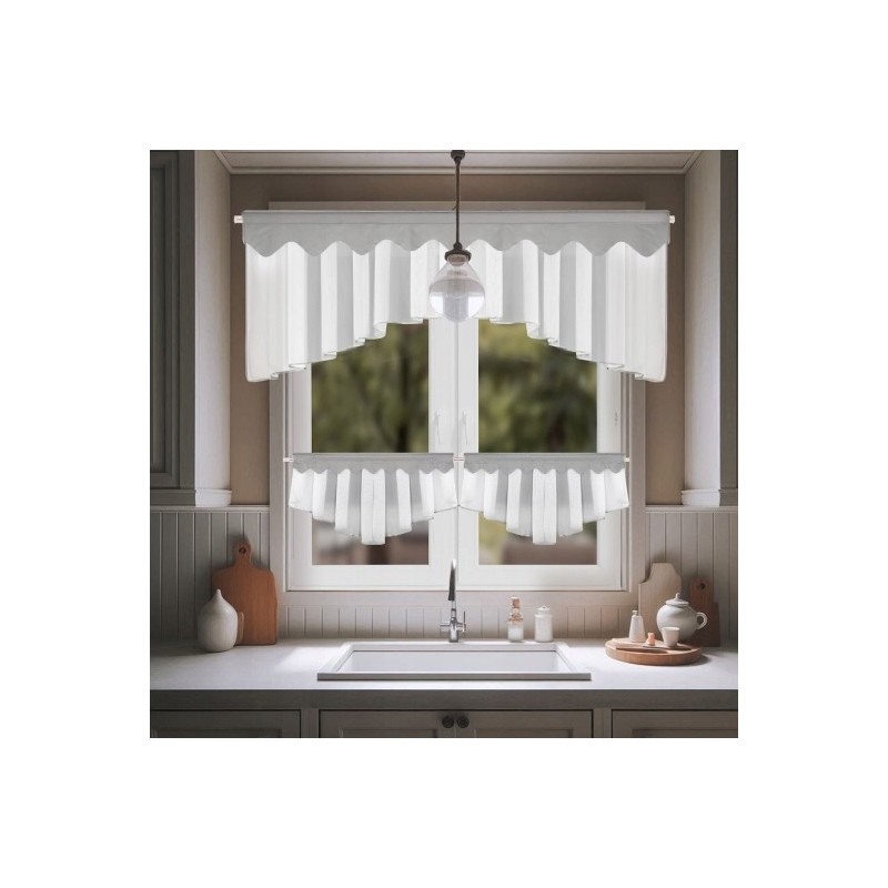 A csomag vitrázs függönyöket és egy hosszabb konyhai voile függönyt tartalmaz.