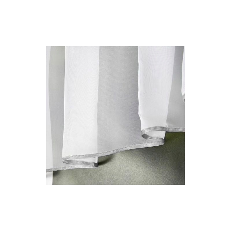 A szett finom fehér voile anyagból készült. Az anyag poliészter, amely tartós és ellenáll a gyűrődésnek. A bevarrt ráncolószalag megkönnyíti a felhelyezést és segít gyorsan az ablak szélességéhez igazítani a megjelenést. A szürke szegély esztétikus, tiszta lezárást ad.