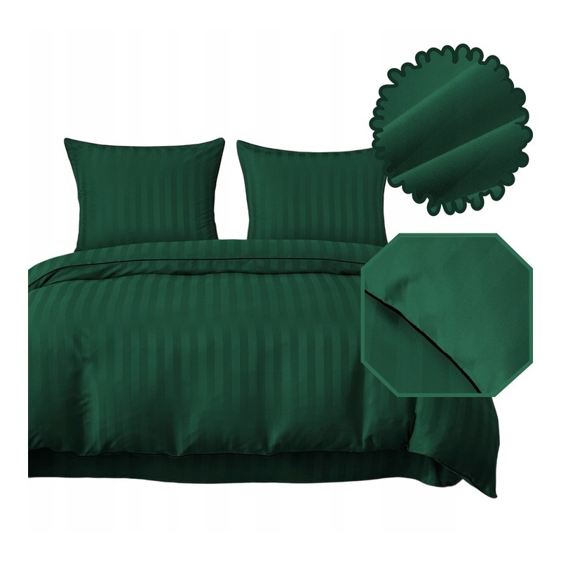 Stílusos damaszt ágyneműgarnitúra 160x200 cm méretben, zöld színben, finom fénnyel és dombornyomott mintával. Puha, légáteresztő és tartós, a cipzáras záródás pedig kényelmessé teszi a mindennapokban. A gyártási folyamat miatt a szállítási idő hosszabb.
