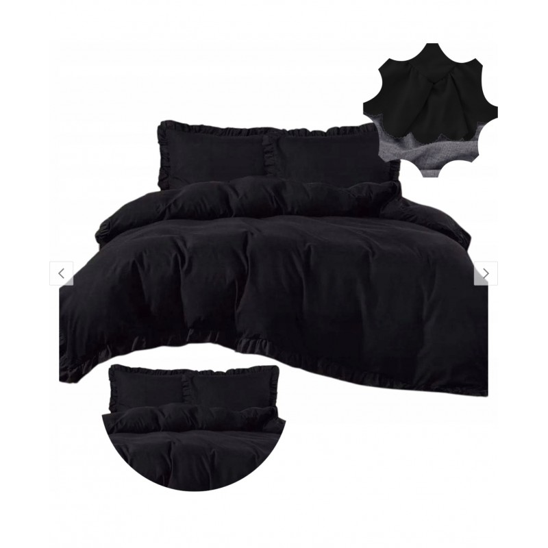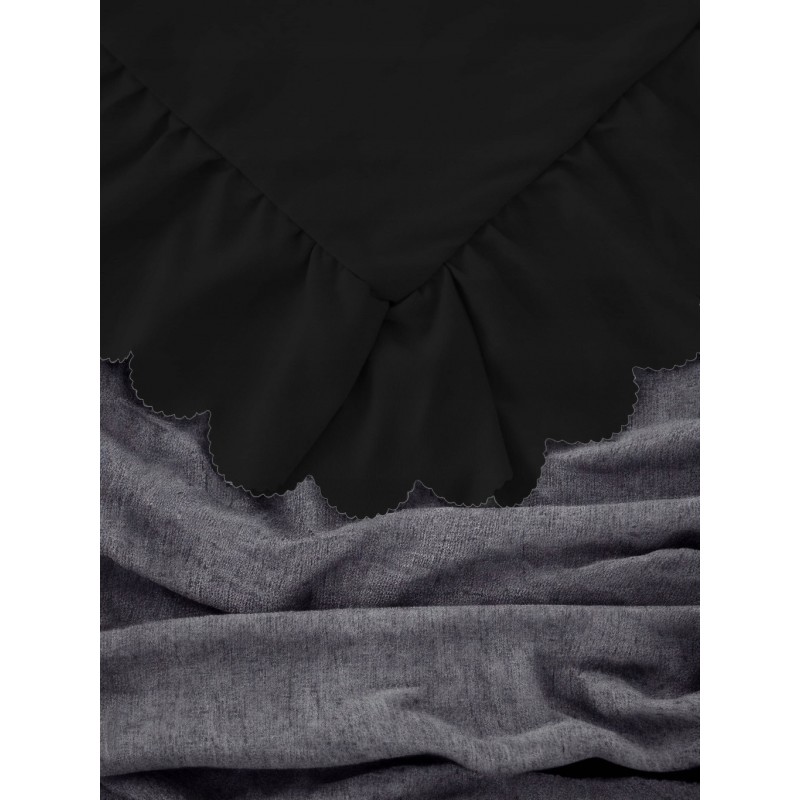A fekete szín a fodrokkal együtt elegáns, látványos hatást kelt, és hangsúlyozza a szett dekoratív jellegét.