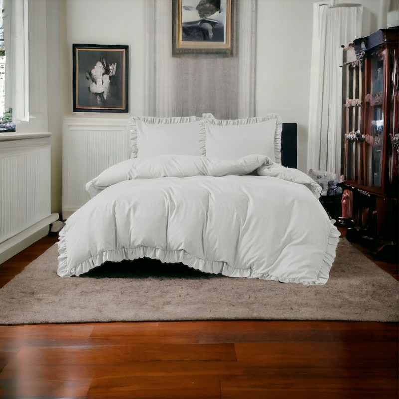 Ez a szett egyszerre ad dekoratív, finom megjelenést és kényelmes alvásélményt. A fodrok kiemelik az ágy összképét, a puha mikroszál pedig sima tapintásával segít ellazulni minden este. Az anyag légáteresztő, nem gyűrődik és gyorsan szárad, így praktikus a mindennapokban, miközben sok mosás után is esztétikus marad. A cipzáras záródás gyors és kényelmes cserét tesz lehetővé. A gyártási folyamat miatt a szállítási idő hosszabb.