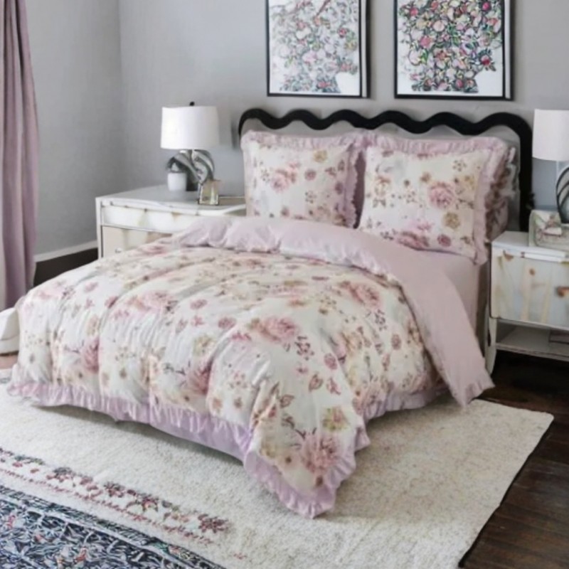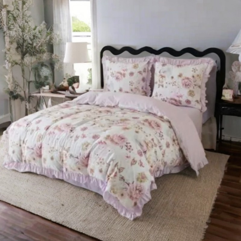 Ez a garnitúra egyszerre ad dekoratív megjelenést és kényelmes alvásélményt. A fodrok finom, stílusos keretet adnak, a rózsaszín virágminta pedig látványosan feldobja az ágy összképét és frissíti a hálószoba hangulatát. A puha mikroszál sima tapintású, a légáteresztő anyag támogatja a komfortos pihenést. A mindennapokban is praktikus: nem gyűrődik, gyorsan szárad és könnyen kezelhető. A cipzáras záródás gyors cserét tesz lehetővé. A gyártási folyamat miatt a szállítási idő hosszabb.