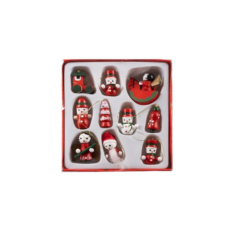 10 darabos fából készült díszkészlet, amely melegséget, egyszerűséget és a karácsony időtlen varázsát hozza otthonába.