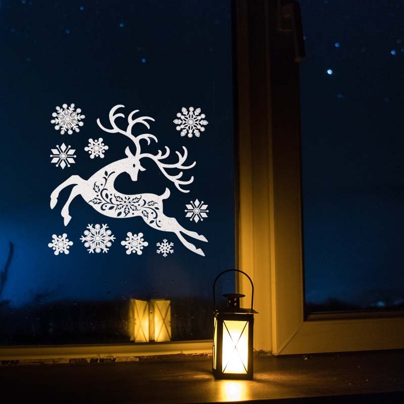Rénszarvasos és hópelyhes üvegmatricák